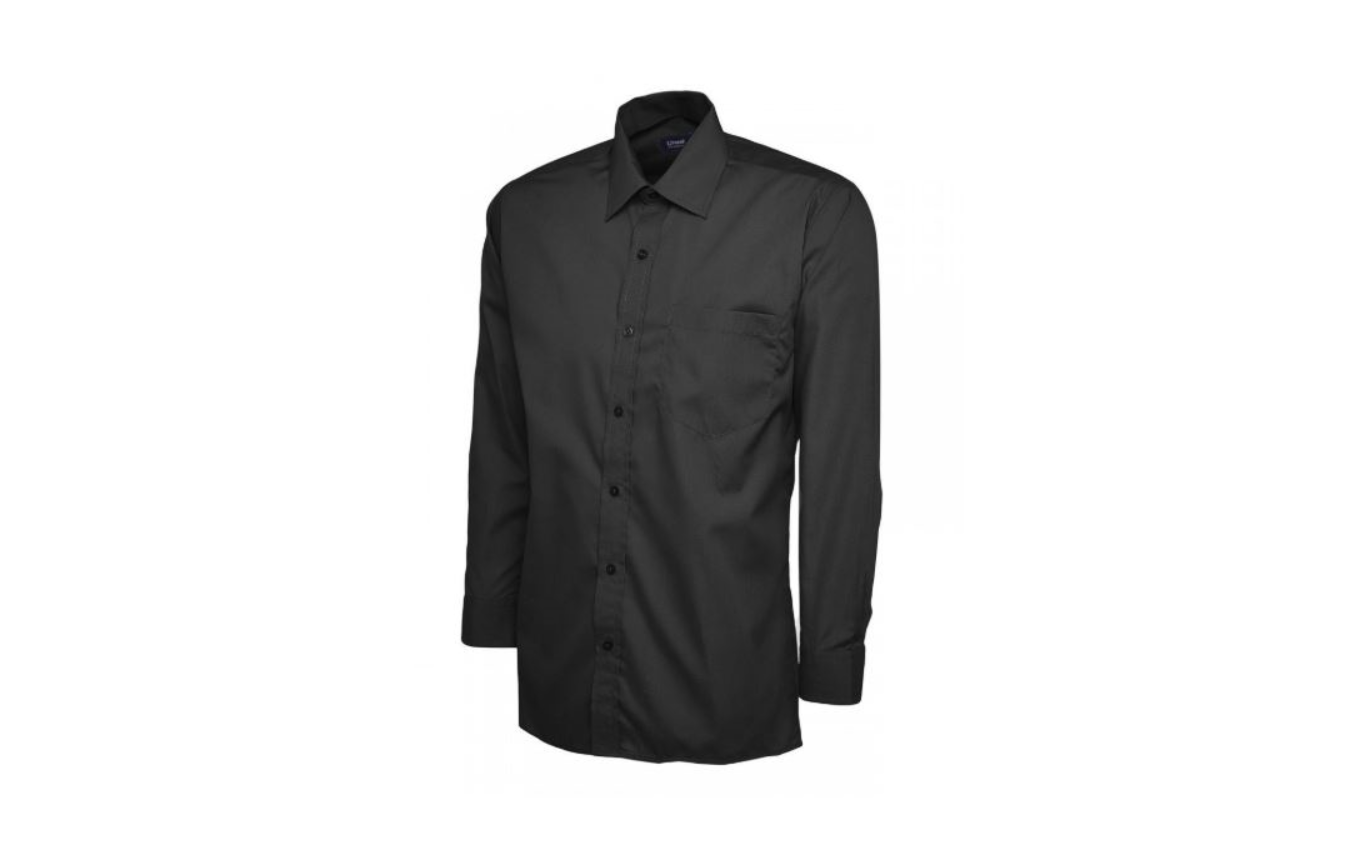 65% Polyester 35% Cotton Poplin Long SleeveLeft Breast Pocket Stiffened Collar Self Coloured Buttons Adjustable Cuffs Back Yoke Straight Hem Easy Care Fabric.